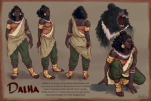 Digital design sheet of my original character, Dalha.