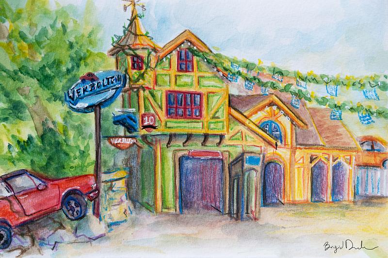 Plein air with watercolor and colorpencil at Busch Gardens Williamsburg